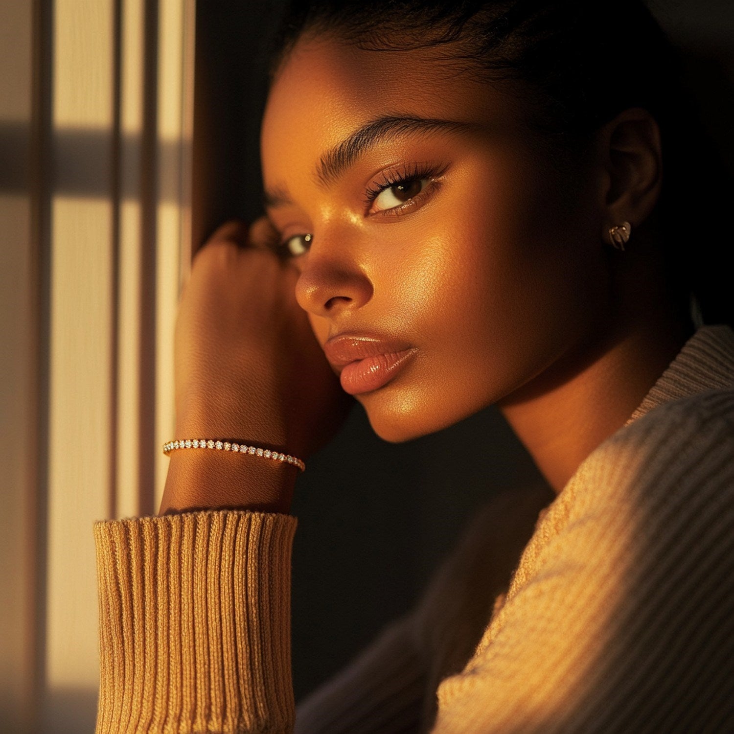 Classic four prong 3 carat total weight diamond tennis bracelet showcasing perfectly matched brilliant round cut lab grown diamonds set in 14k Yellow gold.